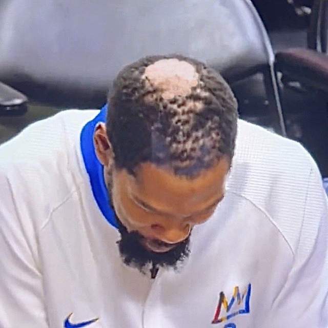 随后,害羞的杜兰特低下了头,这一低头让他头顶的“盛况”被摄像头捕捉到,可见杜兰特头顶头发稀疏几乎已成“地中海”。 对此,有美媒调侃道:“KD这也太疯狂了吧,都这样了还不如直接剃了吧。”