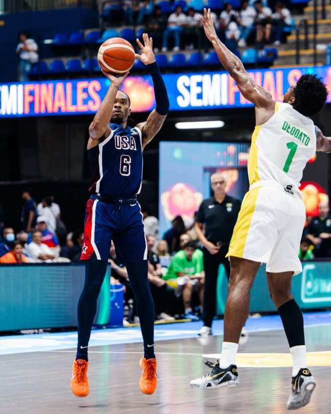 数据方面,美国队全队只有三人得分上双,加洛韦22分3篮板2助攻,加凡特-斯马特13分4篮板5助攻,杰里安-格兰特11分2篮板2助攻。巴西队四人得分上双,桑托斯25分4篮板12助攻,卡波科洛20分7篮板,迪亚斯18分13篮板,德保拉13分7篮板3助攻。