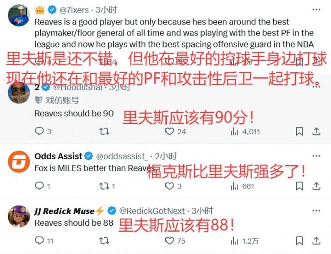 网友热议里夫斯&福克斯2K能力值同为85:太疯 时间: 2025-09-01 来源: 网络 作者: admin 2K26官方更新了一波球员能力值,其中马刺后卫福克斯与湖人后卫里夫斯能力值同为85引发网友热议。 上一篇:乐福更新社媒,晒詹姆斯打高尔夫,挥杆后兴奋 下一篇:队记:热火曾用维金斯+罗齐尔+海史密斯+哈克斯