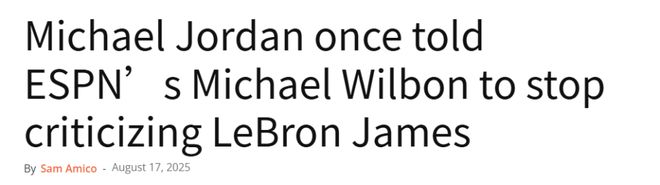 北京时间8月18日,据HoopsWire报道,迈克尔-乔丹曾给ESPN名记威尔本打电话,传达了一个简单的信息:别再批评勒布朗-詹姆斯了。