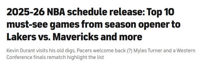 北京时间8月15日,NBA官方已经公布2025-26赛季的赛程,揭幕战将在10月22日打响。知名美媒CBS评出了新赛季必看的10场比赛及其看点——