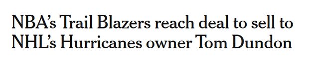 邓顿本人已经向The Athletic证实,他正牵头一个财团收购开拓者队。该财团还包括总部位于波特兰的Collective Global联席首席执行官希尔-泰尔等人。据NBA名记Sidery报道,这笔交易对开拓者队的估值约为43亿美元 开拓者队于5月宣布正式挂牌出售,出售所得将用于慈善事业。由于这笔交易尚未最终敲定。目前拥有该球队的艾伦家族的发言人拒绝置评。开拓者队是保罗-艾伦遗产的一部分。保罗-艾伦于2018年因癌症去世,他的遗嘱要求该球队“在适当时候”被出售。在此期间,艾伦的妹妹乔迪-艾伦一直担任球队主管以及保罗-艾伦信托基金的执行人。