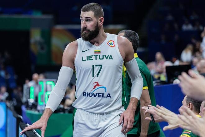 然而,最近正在进行的男篮欧锦赛,却证明了瓦兰依旧具备非常强的实力。 北京时间8月27日,男篮欧锦赛小组赛,立陶宛94-70轻松战胜英国。 本场比赛,立陶宛球员瓦兰丘纳斯13投7中、罚球6中4,砍下全场最高的18分和9篮板,外加1助攻1盖帽。 这样一来,他欧锦赛的总篮板数来到了309个,超越了小加索尔的307个,升至欧锦赛历史第4位。而前三位分别是:大加索尔的475个、诺维茨基的364个以及鲍里斯-迪奥的314个。