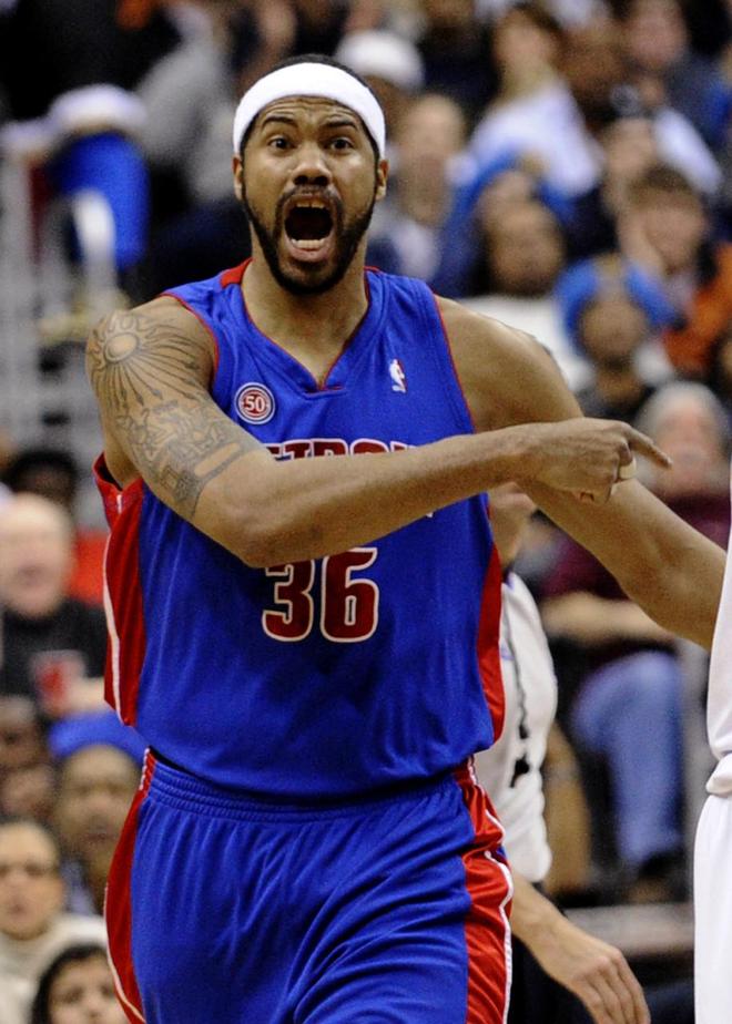 9、活塞交易得到拉希德-华莱士(2004年2月) 很少有赛季中期的交易能像拉希德-华莱士加盟活塞那样,立即产生如此巨大的影响。华莱士从开拓者被交易到老鹰,在老鹰打了一场比赛后,又被送往活塞。这笔交易最终为活塞带来了总冠军。拉希德与本-华莱士组成了统治力十足的前场组合,再加上比卢普斯和理查德-汉密尔顿,他们成功为活塞赢得了十多年来首个冠军。