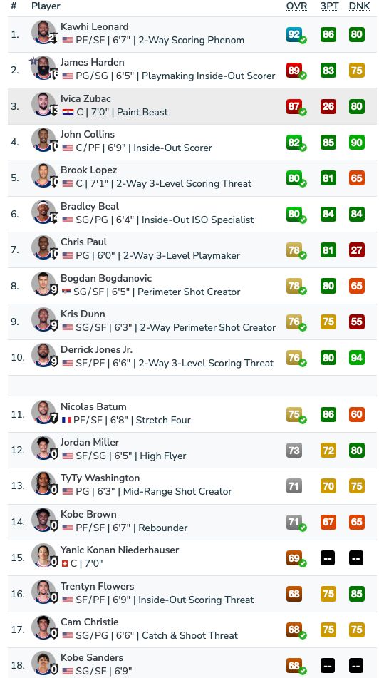 2K26快船全队能力值出炉:伦纳德92领衔,5人80+