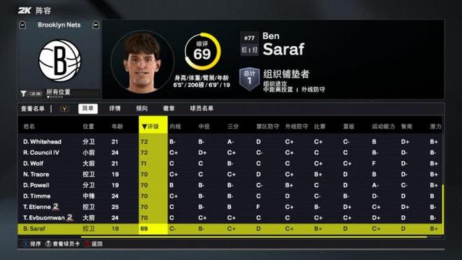 2K26篮网球员能力值:新援小迈克尔-波特82全队最