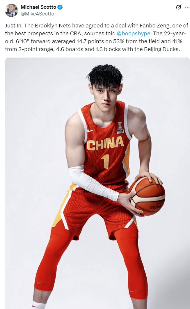 曝曾凡博将竞争篮网双向名额:3选2机会大,北京