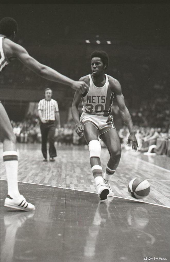 新队徽的主体是个红白蓝三色篮球。红蓝两色分别占据篮球的上下部分,中间留出一个橄榄球形状的白色区域。白色区域的中心是上一版队徽删掉了右侧球员的部分,另外对“nets”的外部连接线作了调整,使其环绕文字的大圈开口更大,调窄了大部分的线宽,突出核心文字,避免喧宾夺主。 至于你说logo中的红色不够红,我想一来有可能是图片色差,第二嘛,也有可能是队徽本来就长这个样,官方宣称的颜色仍是红色。不信?关于“褪色”,球队可不是没有前科。 据说在上一版队徽使用的第一个赛季,由于赶时间,球衣交给长岛当地一家名叫 Long Island Silkscreen 的小厂进行印制。第一次热水洗涤后,红色“NY”背景直接褪成了粉色。球队只得把首批60套球衣全部召回,重新染固色剂。关于此事,NBA官方也使用了春秋笔法,年鉴只写了一句“1968-69,球衣颜色微调”。 如果你足够细心,会发现在第一版的美洲人队徽以及Al Skinner的照片中,ABA的用球与NBA官方的褐色皮球不同,红蓝白三色球才是他们官方的主色调。甚至上一版诟病颇多的队徽,也是严格符合了这种色彩搭配。再放一组彩色赛场照片为证: