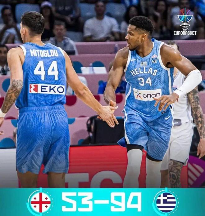 字母可谓是一点NBA同僚的面子也不给 可话又说回来,这毕竟是怪物字母哥啊 你指望他手下留情,他还觉得没发力呢 就在昨晚,希腊再度94-53狂胜格鲁吉亚 三场小组赛净胜77分,字母彻底杀疯了