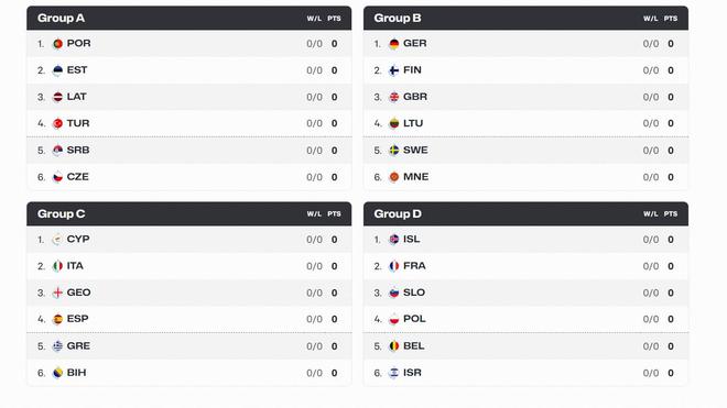本届欧锦赛共有24支队伍,分为4个小组,每个小组的比赛会在其中一个主办城市进行。