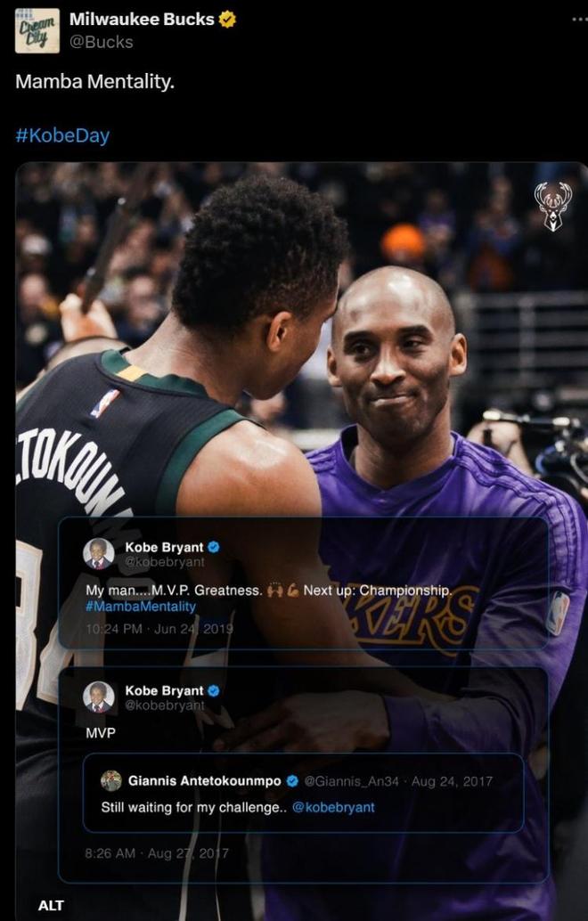 曼巴日!魔术和雄鹿官推发图文对科比表达敬意