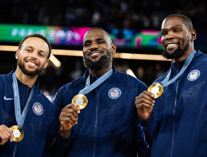 在2024年的巴黎奥运会当中,詹姆斯、杜兰特与库里三大老牌超级巨星率队出战。美国男篮在巴黎奥运会决赛,以98-87战胜东道主法国男篮,实现奥运会5连冠,也是队史第17次夺得奥运会金牌。 只是在2023年男篮世界杯当中,非最强阵容出战的美国男篮表现糟糕,他们仅获得第四名,且连续两届男篮世界杯无缘登上领奖台,再往前一届世界杯美国男篮仅获得第7名。