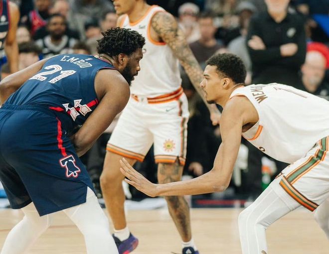 上赛季文班亚马因为右肩血栓问题,只打了46场比赛,场均24.3分11篮板3.7助攻3.8盖帽,投篮命中率和罚球命中率均有明显提升。简单来说,文班亚马距离3.26亿超级顶薪,中间只隔了一个健康问题。他几乎具备了成为NBA门面的全部特质,首先数据表现非常耀眼。菜鸟赛季收官战打掘金,面对约基奇,文班亚马送出34分12篮板5助攻的数据,关键封盖+助攻带队取胜。菜鸟赛季打尼克斯,38分钟内送出40分20篮板7助攻的夸张数据!打猛龙甚至拿到27分14篮板10盖帽的另类三双表现!