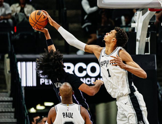 上赛季文班亚马在受伤前,打尼克斯42分18篮板4助攻4盖帽,打奇才轰50分6篮板,他的身高和臂展,让对手无力招架,甚至此前约基奇都感慨,和文班亚马对位太累了,有三分射程,有夸张的篮下覆盖面积,而他这两个赛季的跳投命中率也达到49.8%!上赛季保罗的加盟,让他有明显提升,两人同时在场百回合能赢对手6.2分。保罗在这个夏天离开后,马刺继续围绕文班亚马补强球队,4年2.29亿美元续约福克斯,上赛季卡斯尔也成长为联盟最佳新秀,加上马刺榜眼秀选中哈珀(模板是布伦森和哈登),文班亚马有带队崛起的全配置体系。