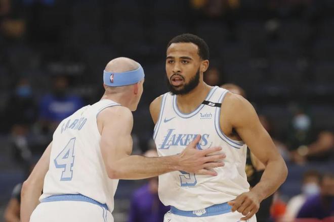 生涯第二年,也就是2020-21赛季,塔克在湖人打了65场常规赛,场均出战20.1分钟,得到9分2.6篮板2.8助攻1抢断,三项命中率:45.8%,28.2%,77.5%。当时他已经成为稳定的轮换成员,管理层甚至把塔克当成建队基石。