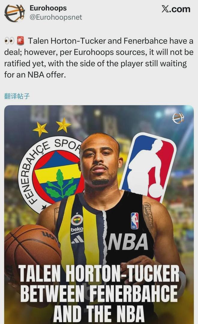 啊? 外媒报道,土耳其豪门俱乐部费内巴切和塔伦-霍顿-塔克达成加盟协议,双方签下的是一份为期1年价值100万美元的合同。