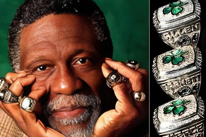 2、拉塞尔11枚总冠军戒指 如果说张伯伦的100分是个人能力的极致,那么比尔・拉塞尔的11枚总冠军戒指,则是团队荣誉领域难以逾越的高峰。拉塞尔职业生涯仅13个赛季,却拿下11次总冠军,其中还包含一次八连冠 —— 这样的夺冠效率,在NBA历史上堪称 “神迹”。而在当下的联盟环境中,这一纪录几乎 “不可破” 。如今的NBA,“抱团夺冠” 已成为一种普遍现象。老板们愿意斥巨资组建 “豪华战舰”,球星们也乐于通过联手来提升夺冠概率,可即便如此,近十年来联盟竟没有一支球队能实现三连冠。 从 “热火三巨头” 到 “勇士王朝”,即便拥有多名全明星球员,球队也需面对伤病、更衣室矛盾、对手针对性补强等多重挑战,夺冠难度可见一斑。近五年,更是呈现总冠军轮番坐的情况。而现役球员中,库里和詹姆斯算是总冠军数量最多的球员,两人均手握4枚总冠军戒指,可这一数字与拉塞尔的11枚相比,还差了整整 7 枚。现在联盟讨论的焦点,仍是 “谁能先拿到 枚总冠军戒指”“谁能超越乔丹的6枚总冠军戒指”,至于拉塞尔的 11 枚,早已成为球员们口中 “只可仰视,无法企及” 的存在。