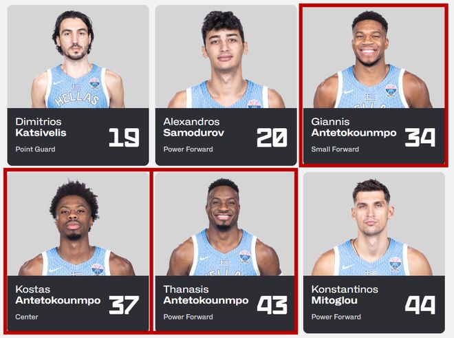 值得一提的是,字母兄弟不仅在雄鹿同队,国家队也同时入选,一同入选的还有字母弟弟科斯塔斯阿德托昆博,后者曾在独行侠、湖人效力过。 目前字母三兄弟正在一同代表希腊男篮出战欧锦赛,且希腊男篮小组赛至今3胜0负,字母哥场均可以拿下29.0分,字母哥哥3.3分,字母弟弟0.7分。
