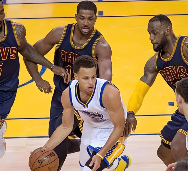 库里的出现,彻底改写了 “包夹的距离”。谁能想到,一个身高1米91的控卫,持球还在中线附近就会被对手包夹?2016 年是库里的巅峰起点,也是联盟防守策略的 “转折点”:他的三分从不是 “空位机会”,而是 “无视距离与防守”—— 哪怕面前有防守者贴防,哪怕球还没过半场,他都能抬手命中超远三分。为了限制他,对手不得不派出 “疯狗式” 后卫全场撕咬,还得让队友随时准备协防包夹,可即便如此,库里依旧能靠着运球摆脱与传球视野,为队友创造大量空位机会。他的三分威胁打破了传统 “篮下 - 中距离 - 三分” 的进攻层级,也让 “中线包夹” 成为新世纪独一份的防守奇观。