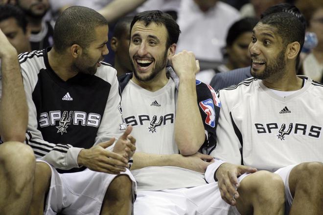 4、马刺(2014年) 常规赛战绩:62胜20负 季后赛战绩:16胜7负 总决赛对手及比分:热火(4-1) 这支马刺队中无人获得任何个人奖项。只有托尼-帕克入选了全明星赛。队中没有人场均得分达到17分。然而,几乎毫无疑问,这将是马刺队史上最被球迷铭记和敬仰的总冠军,在那个赛季,他们达到了篮球的涅槃境界,并用NBA有史以来最美妙的篮球之一终结了勒布朗-詹姆斯在热火的时代。 这里有一项令人难以置信的数据:在NBA总决赛中,马刺在四场大胜中场均比热火多传球100次。他们52.8%的投篮命中率至今仍是总决赛纪录。马刺的前四个总冠军在普通球迷眼里有些无聊。而第五个总冠军则完全不同。它体现了我们心目中理想的篮球形态。他们可能没有其他冠军球队那么有天赋,但他们达到了自那以后任何球队都没有达到过的凝聚力、清晰度和创造力。