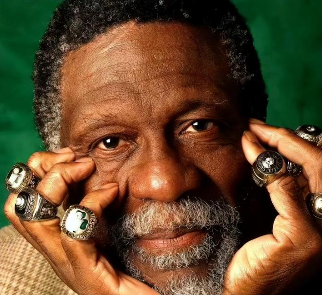第一位,当属 “指环王” 比尔・拉塞尔。即便我们客观承认,他所处的时代联盟球队数量更少、竞争力与如今存在差距,但这丝毫无法掩盖他对那个时代的绝对掌控。13 年职业生涯,他带领凯尔特人拿下11座总冠军奖杯,其中更是创下了震古烁今的 “8 连冠” 纪录 —— 这样的夺冠频率,在 NBA 历史上是前无古人、大概率也后无来者的存在。除了团队荣誉,拉塞尔的个人地位同样无可撼动:5 次当选常规赛 MVP,是球队防守体系的绝对核心。彼时的NBA尚未设立 FMVP 奖项,但熟悉那段历史的人都清楚,若当时有这一荣誉,以拉塞尔在总决赛中的关键作用,至少能将 8 座 FMVP 奖杯收入囊中。有人说他 “队友强”,但别忘了,是拉塞尔用教科书级别的防守奠定了球队夺冠的基石,他的篮板预判、封盖时机与团队协防意识,重新定义了中锋的防守价值,也让凯尔特人成为那个时代的 “王朝代名词”。他或许不是得分最爆炸的球员,却是那个时代最能决定比赛走向的统治者。