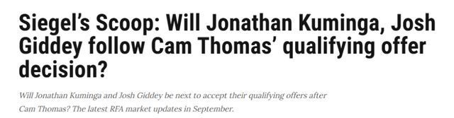 北京时间9月5日,名记Siegel报道,NBA训练营开幕已近在眼前。尽管受限制自由球员市场的进程依旧缓慢,库明加、吉迪和格莱姆斯仍未签下合同,但随着卡姆-托马斯决定与篮网签下1年600万美元的资质报价,市场的第一块多米诺骨牌已正式倒下。
