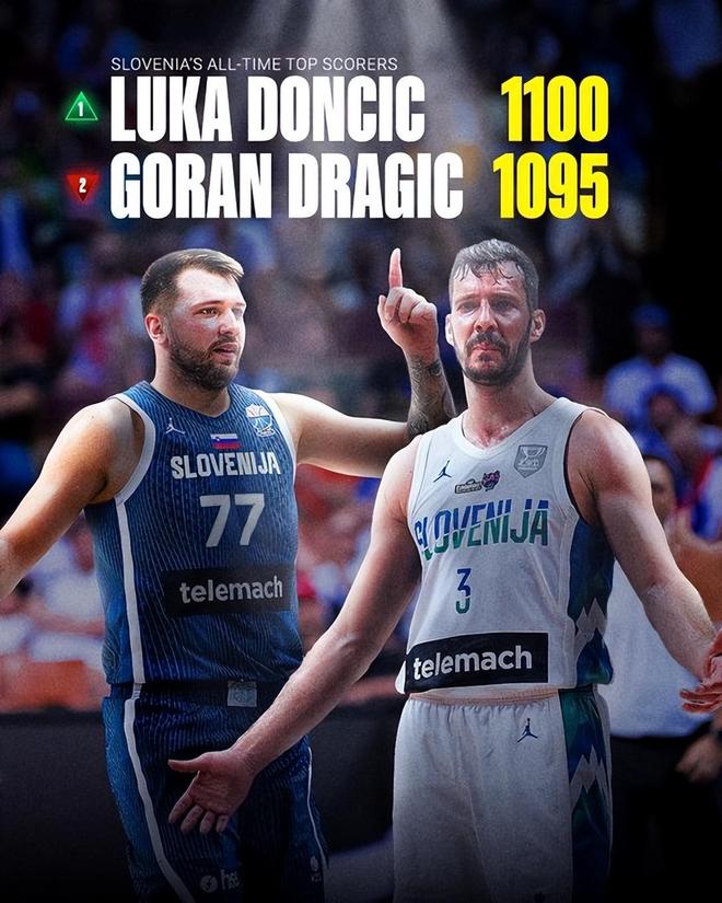 值得一提的是,本场比赛过后,东契奇迎来一项荣耀里程碑,那就是国家队生涯总得分(1100分)超越斯洛文尼亚名宿德拉季奇(1095分),成为了斯洛文尼亚男篮队史得分王。今年休赛期,东契奇下定决心进行改变,通过严苛的饮食管理和高强度训练成功瘦身十几磅,这让他的身体状态达到了顶峰。今年小组赛,东契奇出场5次,场均出战33.4分钟可以砍下32.4分8篮板8.4助攻3.2抢断,场均效率值达到了恐怖的35.4,其中得分和抢断以及效率值高居赛会第一,助攻排名第二。