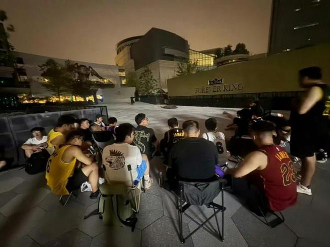 目前,湖人球星勒布朗詹姆斯正在进行中国行活动,他将在今日前往第二站成都,差不多下午的时候抵达成都的万象城参加活动并与现场球迷互动。今日,据中国媒体报道,从昨天晚上开始,就有很多穿着詹姆斯球衣的球迷在万象城附近守候,他们搬着凳子、甚至不少席地而坐,在此彻夜守候只为抢到一个更近距离与偶像接触的机会。
