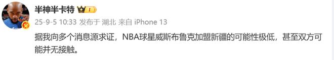 威少加盟新疆?多个消息源证明可能性极低,甚