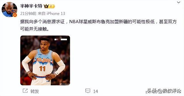 威少新赛季有望加盟新疆?媒体人:可能性极低