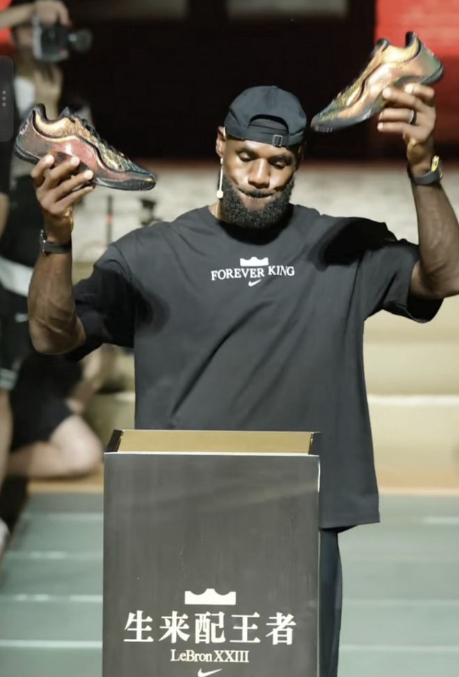 就光是这个皇冠一样的logo,就已经能够看出詹姆斯的巨大影响力,排面是很足的,库里哈登这些人也来到中国了,但其实都是更多的和球迷们一块交流互动,不过却从来没有像詹姆斯这样拥有一个这么大的皇帝logo。