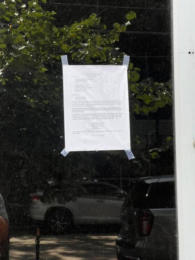 直播吧09月04日讯 据《休斯敦纪事报》记者Michael Shapiro报道,快船球星、前火箭核心哈登在休斯敦的餐馆“Thirteen”目前因拖欠220万美元的租金和其他租赁款项而被关闭,餐馆门上贴着一张通知。 从通知上可以看到,“由于未支付租金,该场所的门锁已更换,租户不得入内。”如果拖欠的租金得以支付,可以向“Thirteen”的管理处领取新钥匙。