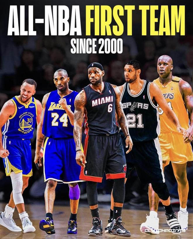美媒 ClutchPoints 发布“自2000年以来年度最佳阵容第一队”主题图后,讨论再起。围绕这组人选——库里、科比、詹姆斯、邓肯、奥尼尔——在当下强调五人外线拉开与高速换防的语境里,它究竟是统治力与情怀的最优解,还是被时代克制的经典?下文将从分工、空间、防守与针对性替换四个维度展开。 最佳阵容控球后卫 库里(Stephen Curry) 代表球队:金州勇士(30号) 主要荣誉:NBA总冠军×4;常规赛MVP×2(一次全票);总决赛MVP×1;得分王×2;ALL-NBA第一阵容×4