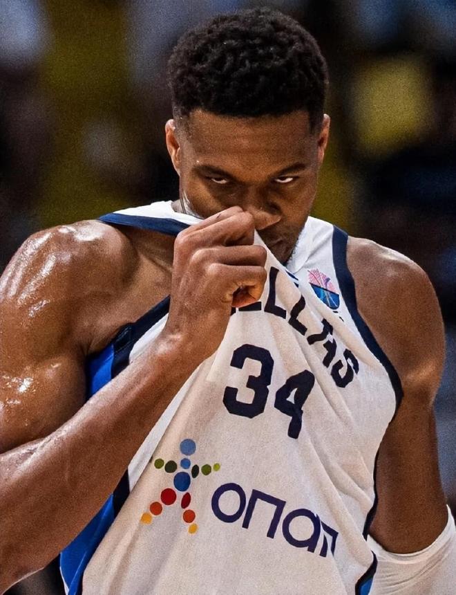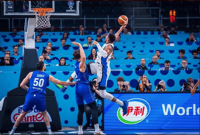 因为这个球帽完了,篮板球在对面手里,字母哥协防先把对手想要原地进攻的意图给浇灭了,连续两次送上了精彩的防守。这还没完,字母哥防守逼着对面把球传出去,接下来他又在10.8秒的时候扑到三分线外,干扰了对手以色列队的追分三分球。