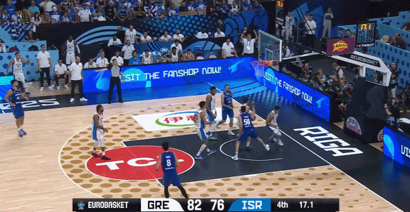 当时比赛最后以色列队没有放弃,他们只落后了6分还在强攻,结果字母哥上演精彩的连续防守回合。先是在时间还剩下14.5秒的时候,以色列队强攻被字母哥送上一个单手的遮天大血帽,单臂把对手给摁了下来,这个球防完之后,接下来字母哥在时间来到12.7秒的时候,站在三秒区里面又完成了一次协防。
