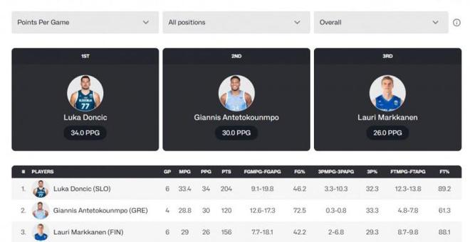 均率队进8强!东契奇欧锦赛场均34分排名第一 字
