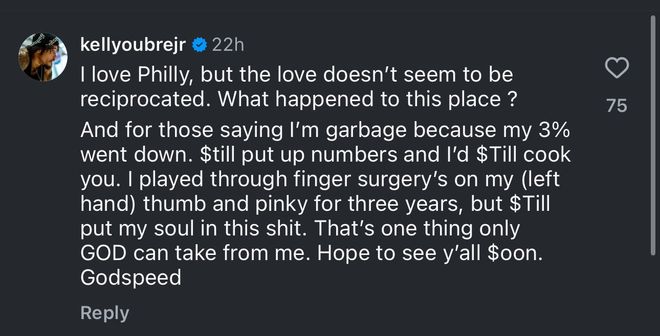雷速体育9月10日讯 根据此前美记Jake Fischer的报道,76人为了续约格莱姆斯时能腾出空间,考虑交易走乌布雷或者德拉蒙德中的一人,甚至两个都交易走。 对此乌布雷本人在社交媒体上公开回应了此事:“我爱费城,但这份爱似乎没有得到回报。这地方怎么了?对于那些因为我的三分命中率下降就说我垃圾的人,我依然有数据支撑,我还是能击败你们。我经历了左手的拇指和小指手术,持续打了三年,但我的灵魂始终投入其中,这是只有上帝才能从我这里拿走的东西。希望很快能再见到你们,上帝保佑。” 乌布雷上赛季出战60场比赛,场均砍下15.1分6.1篮板1.8助攻1.5抢断,投篮命中率47%,三分命中率29.3%,休赛期他选择执行下赛季840万美元的球员选项,继续留在76人。 |