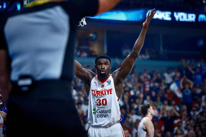 本场比赛中,土耳其队的替补内线新星阿德姆-博纳(Adem Bona)还是展现出了不错的个人能力的。博纳全场出场13分35秒,投篮1中1,罚球4中2,得到了4分4篮板3盖帽的数据,还有1次犯规,正负值为+1。博纳的出场时间和出手次数都比较有限,他也确实是很难在进攻端发挥出更大的作用,他也没有办法得到更多的分数,这也是一件情理之中的事情。不过博纳在防守端的表现绝对算得上是令人刮目相看,他也是将自己在身体天赋和运动能力方面的优势充分发挥了出来,他能够利用自己在这方面的特点进行护筐,他在防守端也是取得了相当不错的效果。能够在出场时间不多的情况下打出这样的表现,其实并不是一件容易的事情。