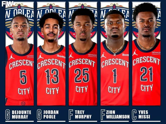 第三名:鹈鹕队 24-25赛季:21胜61负 鹈鹕队是过去几个赛季最悲情的球队之一,自从浓眉哥被交易后,鹈鹕队无缝进入锡安时代,后者一度被视作下一个联盟门面,当他登场时,锡安也的确拥有顶级的比赛影响力。 无奈的是,每当鹈鹕队在休赛期打造出纸面上看起来极具竞争力的阵容时,伤病总会将一切安排彻底打乱。 休赛期鹈鹕重整阵容,随着普尔的加盟,以及穆雷、锡安、墨菲与琼斯的伤愈回归,鹈鹕队完全有能力将胜场数翻番,但前提是长久保持健康,这一点对于鹈鹕队来说并不简单。