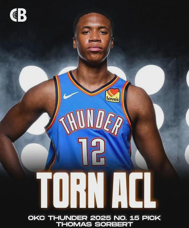 雷霆的25届首轮15号秀托马斯-索伯,在训练中遭遇右膝前十字韧带撕裂,25-26赛季全部报销。 这哥们作为身高2米08的内线,上赛季为乔治城大学出战24场比赛,场均亮相31.3分钟,有着14.5分8.5板2.4助1.5断2帽全面数据进账,场均得分队内第二&场均篮板全美大一新生中高居次席。