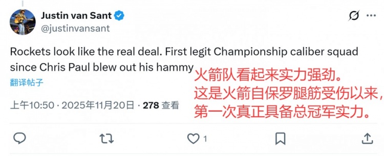 11战10胜!美火蜜:18年后窝火首次具备总冠军实 时间: 2025-11-20 来源: 网络 作者: admin 上一篇:张佳玮:火箭四塔赢了骑士双塔 申京4号位体格干 下一篇:西部二三之争!火星撞地球!火箭下一场比赛将