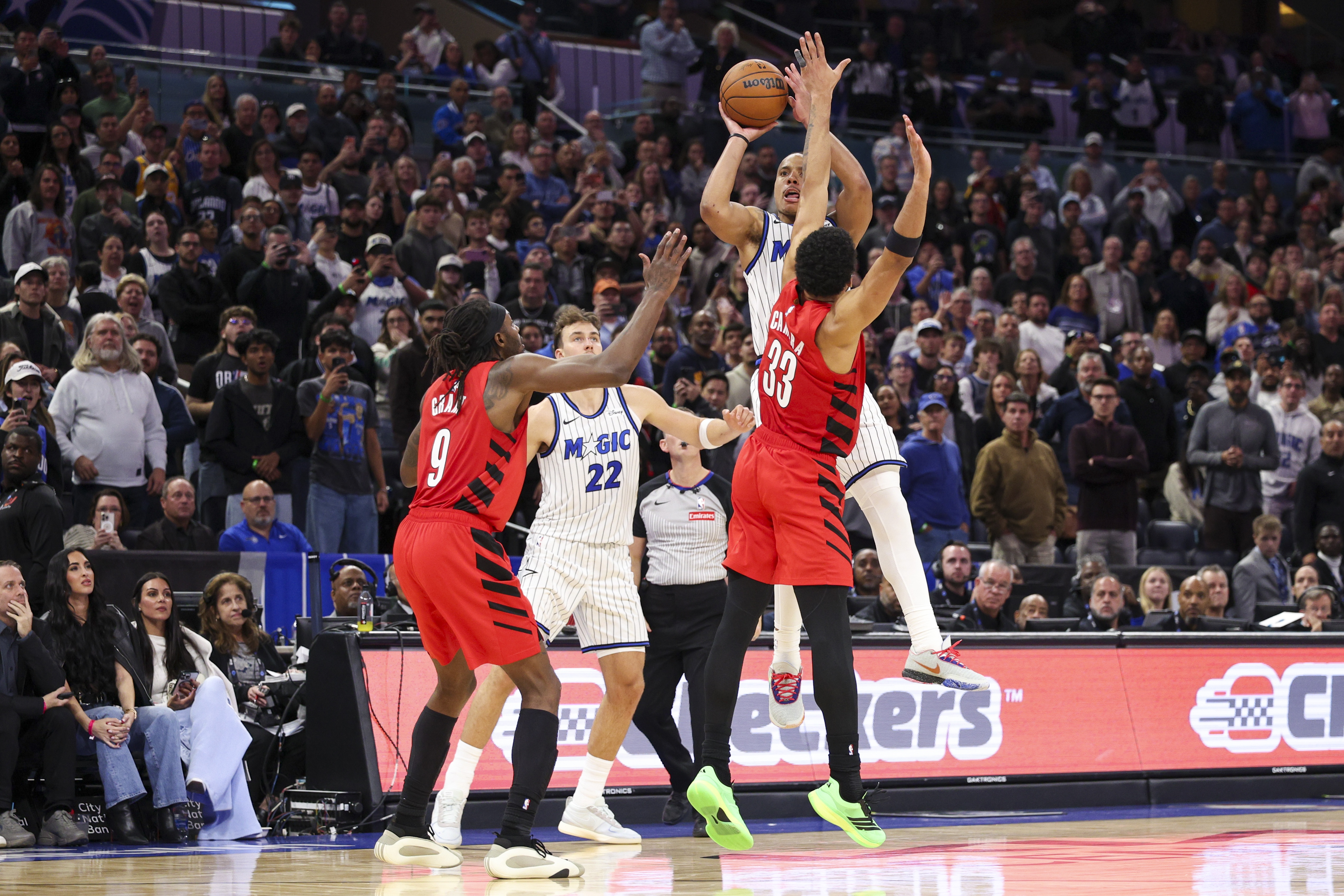 2025年11月11日,魔术主场115-112战胜开拓者,贝恩在1.9秒接球,面对卡马拉投出漂移三分,一箭穿心完成压哨绝杀。 维金斯0.4秒极限空接扣篮绝杀骑士