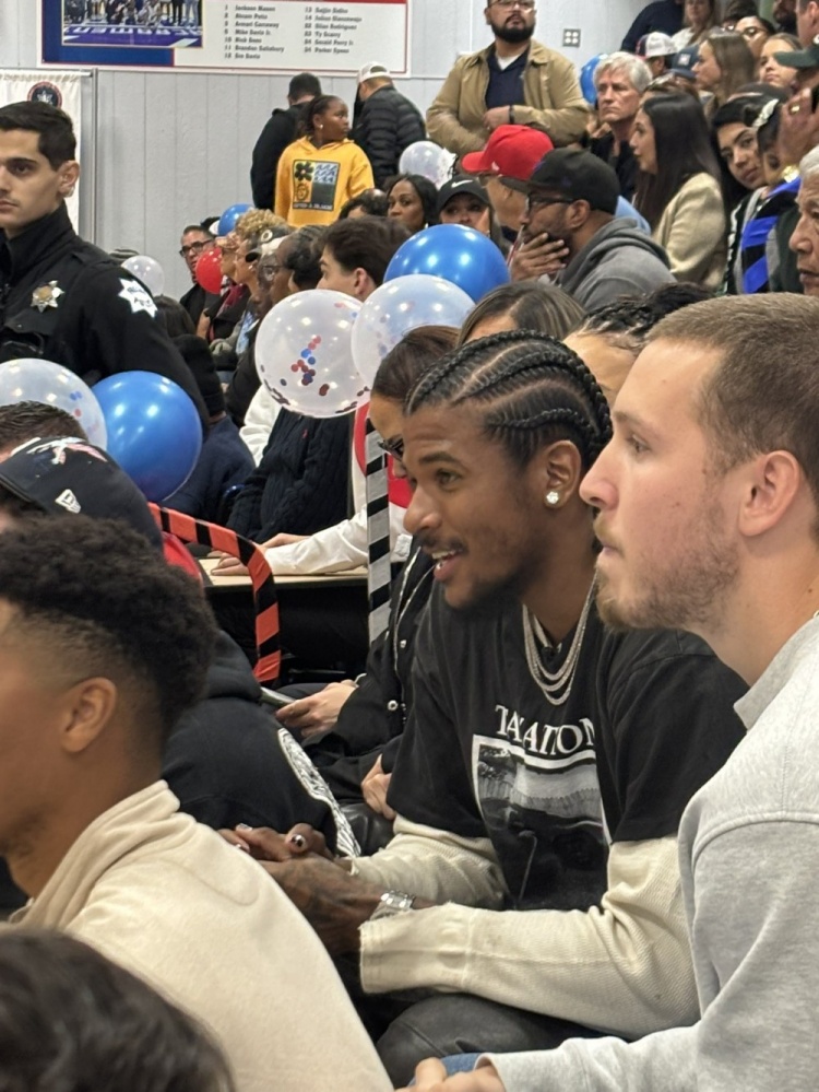 足球比分网11月21日讯 昨日,太阳后卫杰伦·格林的高中球衣退役仪式在圣华金纪念高中举行。 太阳主教练乔丹·奥特和多位新队友都来到现场,支持杰伦·格林。