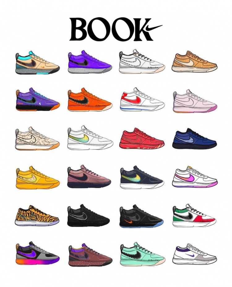 足球比分网11月20日讯 昨天,布克个人第二代签名鞋Book 2正式亮相。这样一来,也意味着Book 1的周期告一段落。 专门绘制太阳队方面插画的Suns Illustrated,也绘制了已知的全部Book 1配色,你可以从这些简单的插画中认出多少款布克的球鞋?
