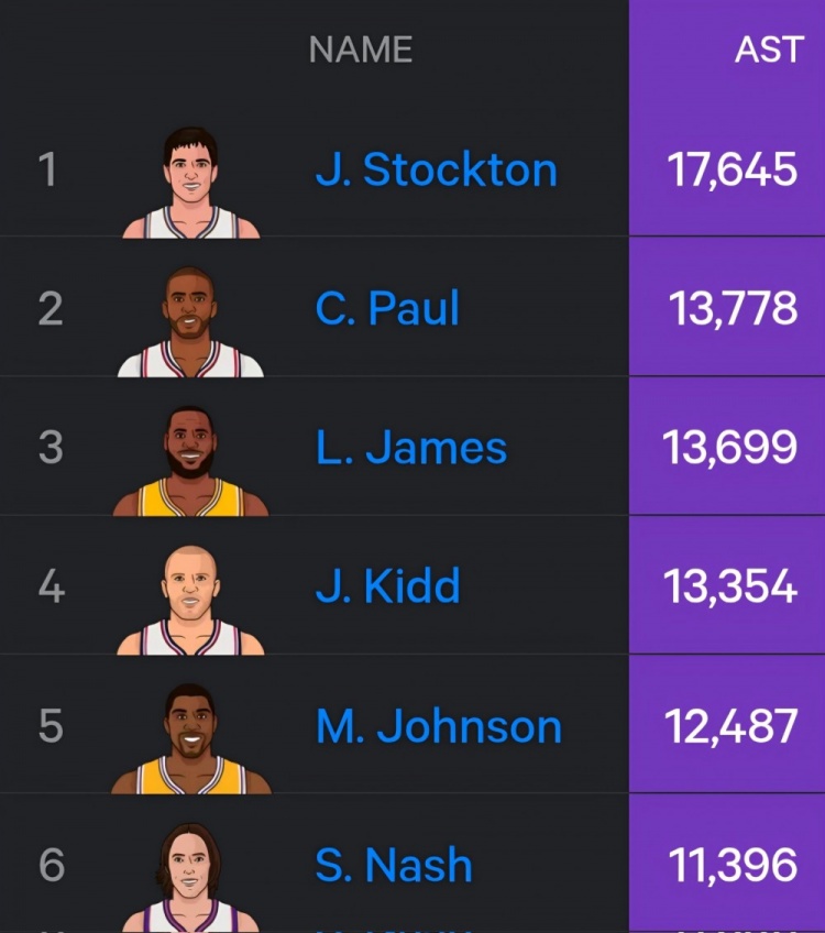 足球比分网11月24日讯 NBA常规赛,湖人108-106击败爵士。 詹姆斯出战34分钟,投篮18中8,三分4中0,罚球2中1,拿到17分6篮板8助攻1抢断,正负值-14。 至此,詹姆斯生涯常规赛+季后赛总助攻数来到了13699次,距离超越历史第二的保罗80次。具体排名如下: