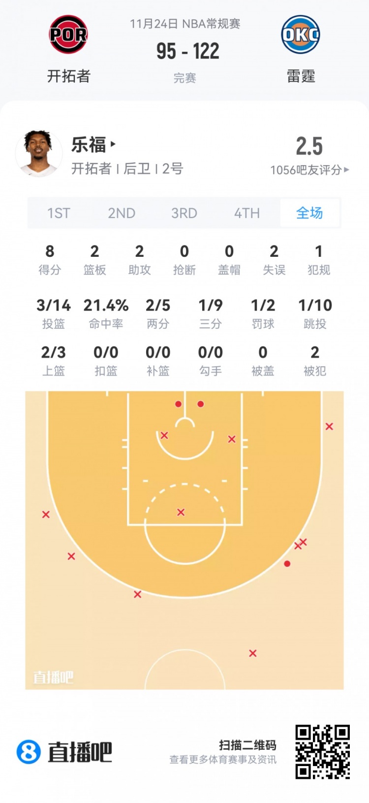 【菜鸟】杨瀚森8分4板3助1帽 克尼佩尔28分继续闪