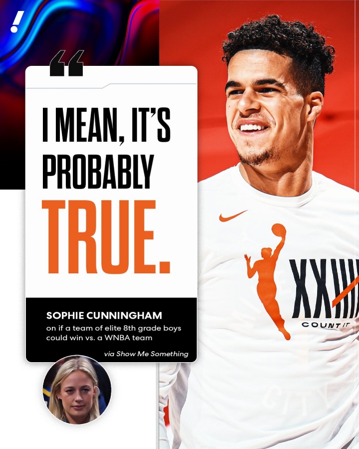 小波特初二就能击败WNBA球队?索菲·坎宁安:他