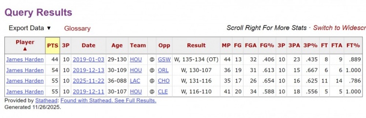 哈登(4次) 哈登生涯至今4次单场10+三分,其中19年对阵勇士这场是44分10篮板15助攻的三双。
