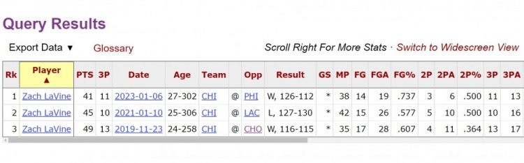 希罗(两次) 2022年12月对阵火箭,希罗20投13中,三分15投10中,砍下41分6篮板,帮助热火111比108取胜。去年11月对阵活塞,希罗27投14中,三分17投10中,砍下40分5篮板8助攻4抢断,不过热火加时121比123惜败。