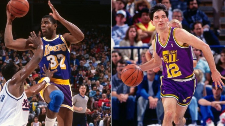 说回斯托克顿: 约翰·斯托克顿助攻抢断双历史第一,绵长坚韧又合理。 但魔术师是比斯托克顿更卓越的策动者:按说斯托克顿助攻数字高过魔术师,但助攻与助攻不同。 斯托克顿极少冒险,魔术师始终在冒险;斯托克顿有惊鸿一瞥的长传和追身投,而追身压迫找错位破坏防守是魔术师的日常。 斯托克顿是完美的传统控卫,魔术师独一无二。